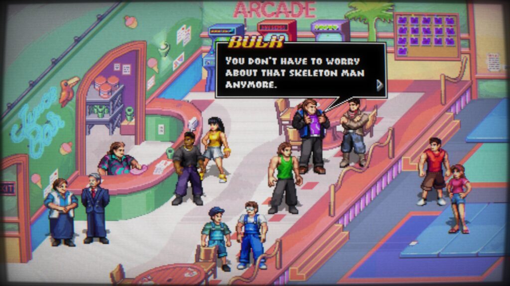 There’s so much focus on the visual here that it feels like they forgot to give the game any actual substance. The game looks great – equally on par with Shredder’s Revenge, down to the CRT monitor filter that would make this game look fantastic on a six player arcade cabinet. That’s where a lot of the praise ends.
